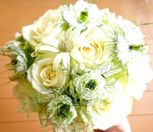 いつまでもシアワセが続くよう願いを込めた、ブーケ、ブートニア、花冠など。