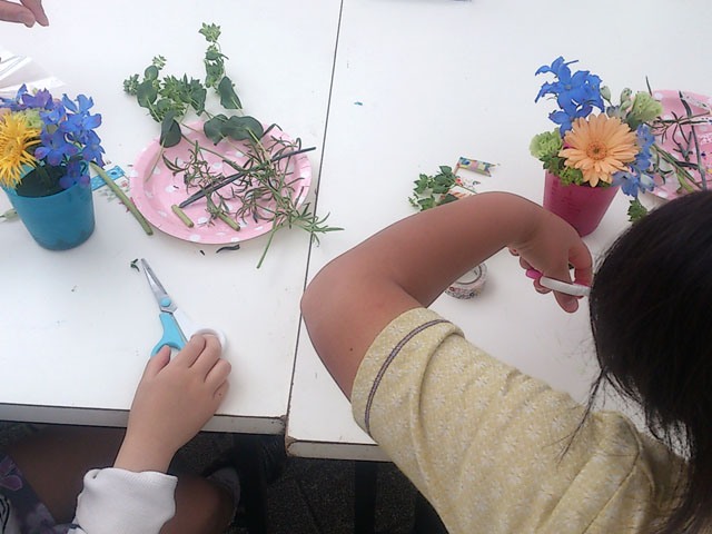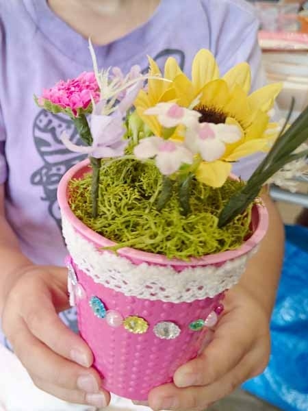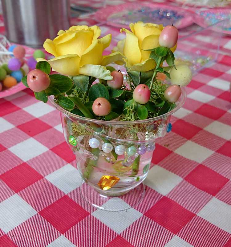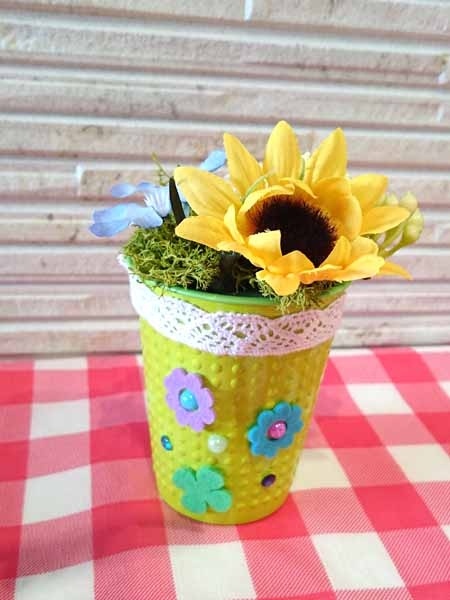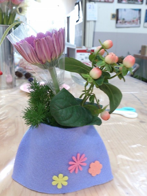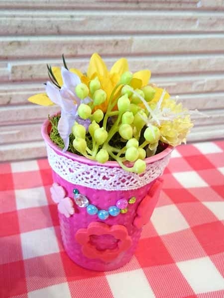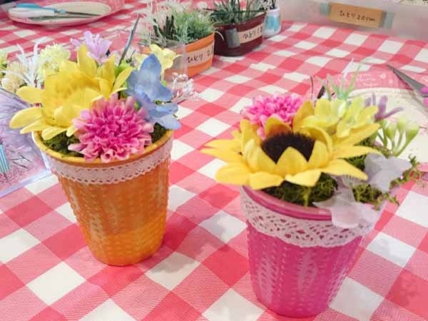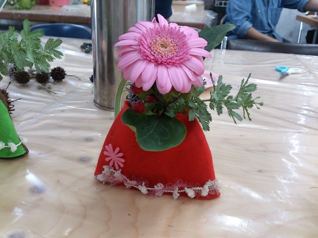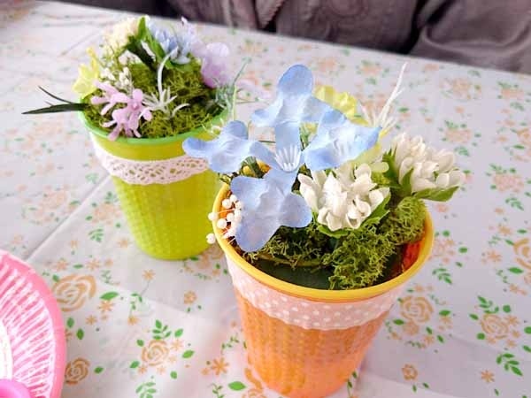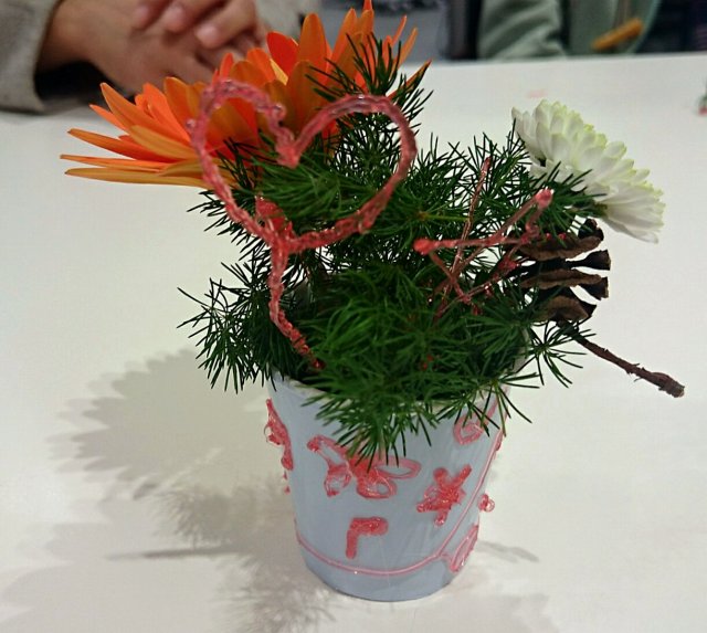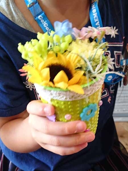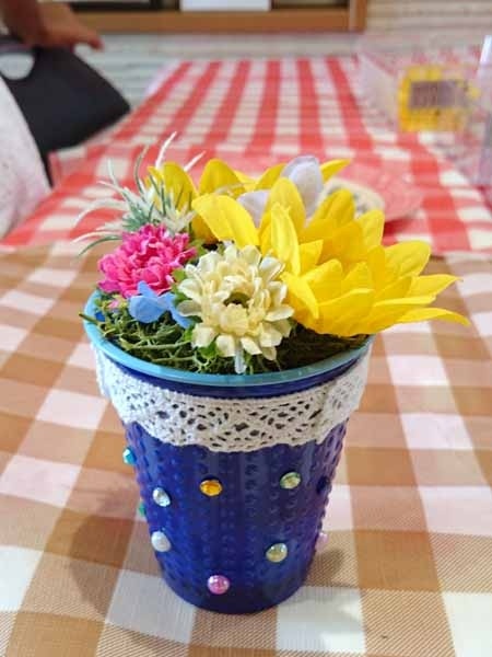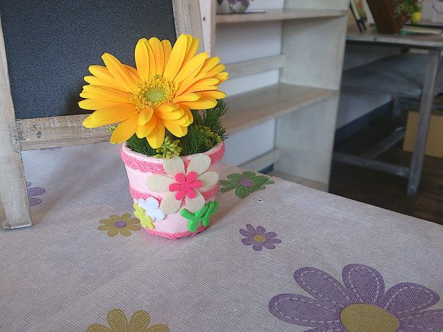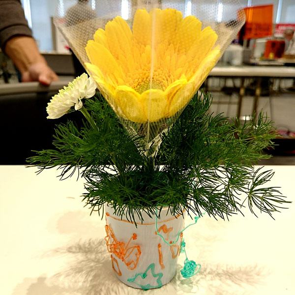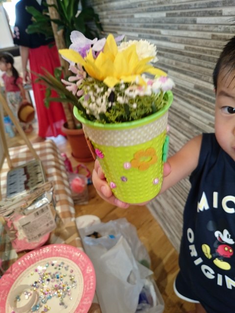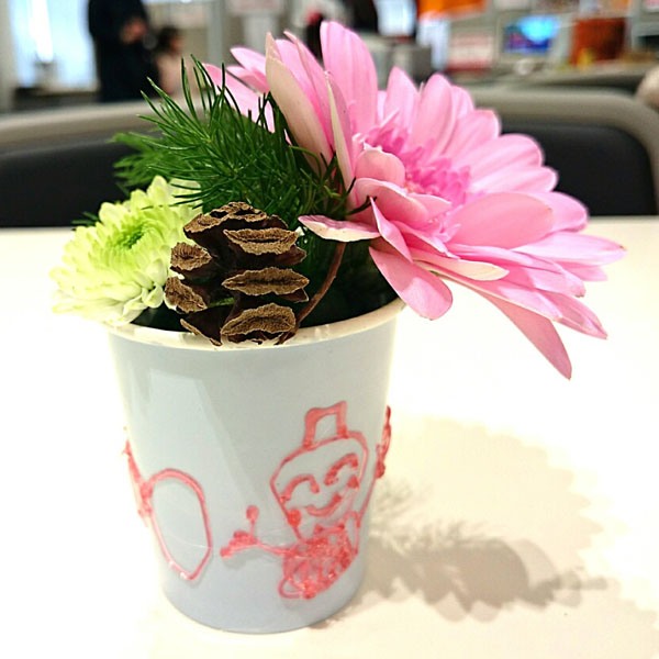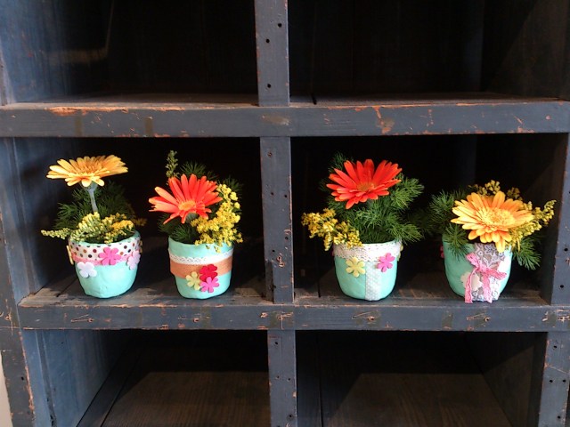 子どもさんたちに、花器に思いっきりデコってもらいました。創造力の豊かさに脱帽です。