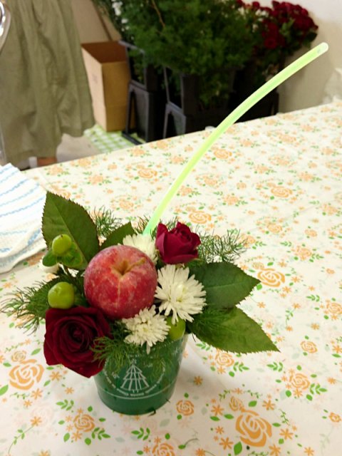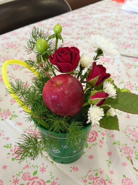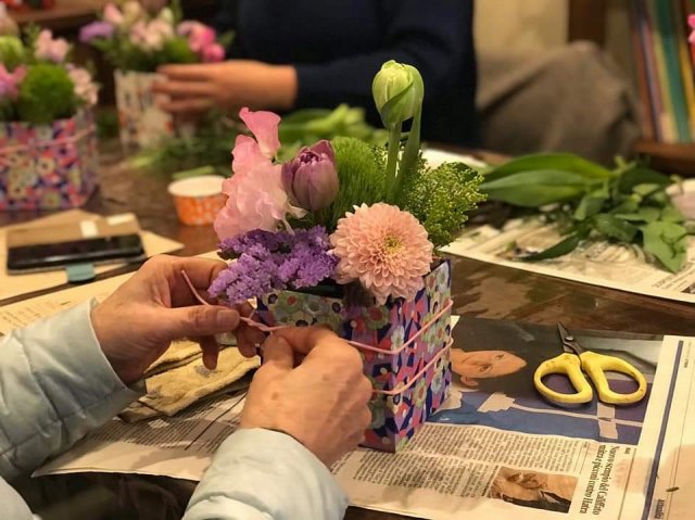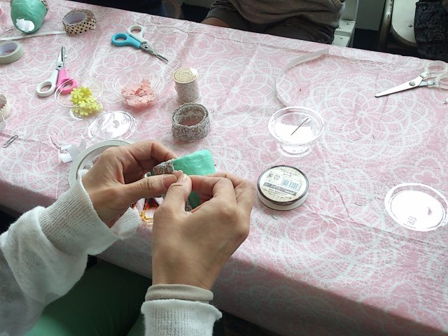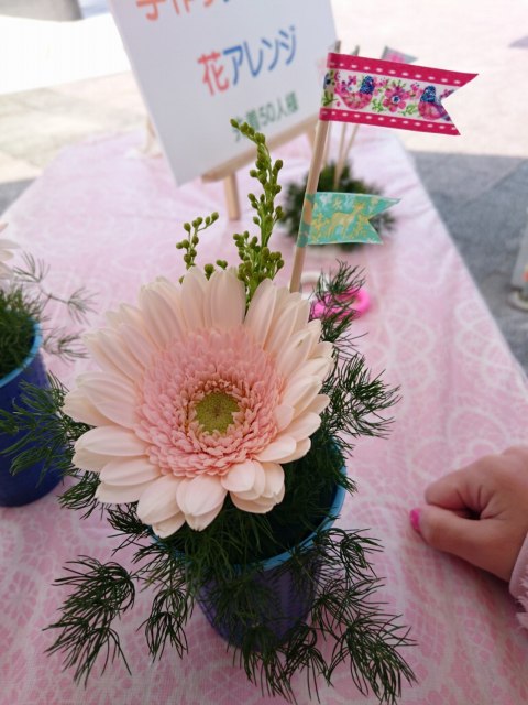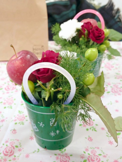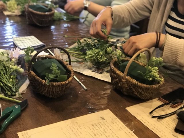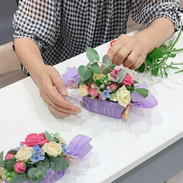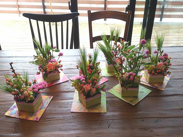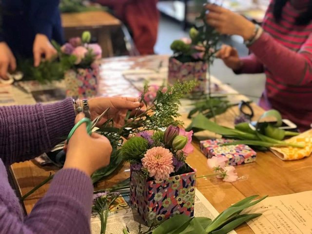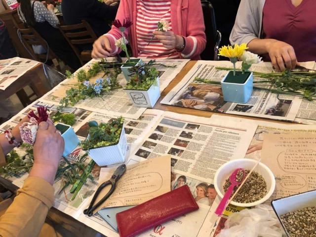三度目のつながるマルシェ。今回は初のアーティフィシャルフラワーを使ってミニアレンジ作り。
