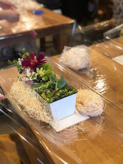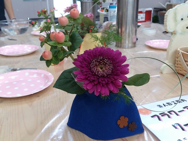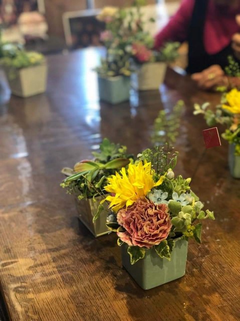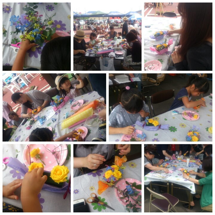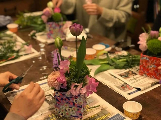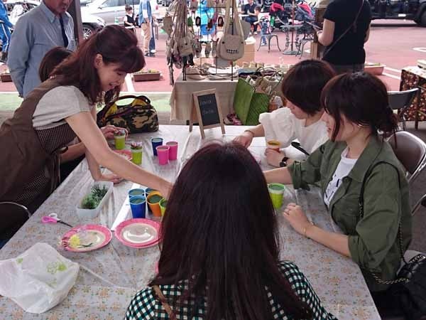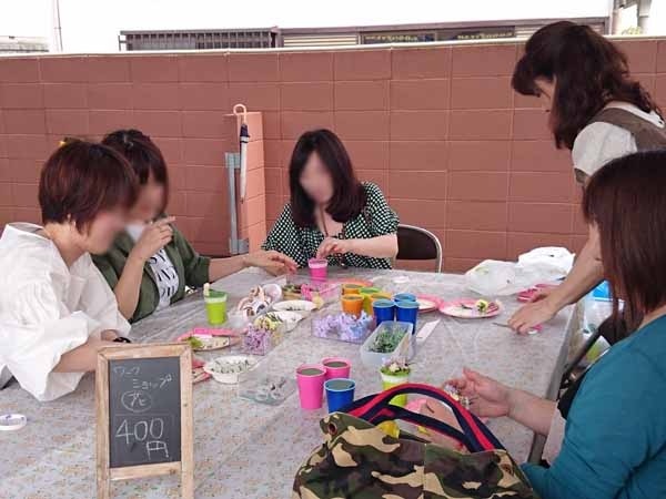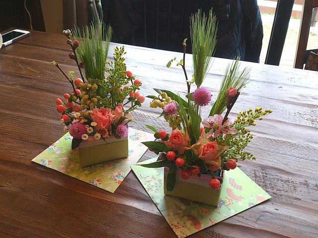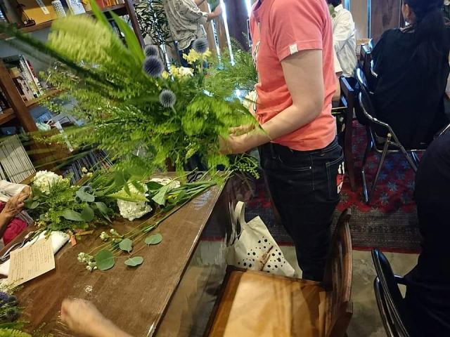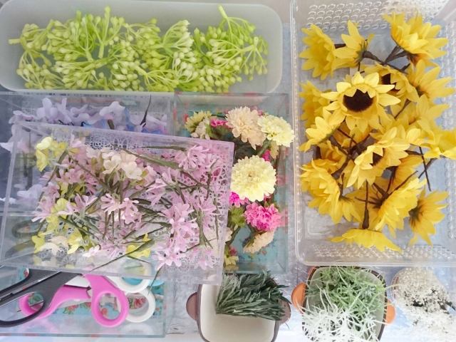 三度目のつながるマルシェ。今回は初のアーティフィシャルフラワーを使ってミニアレンジ作り。