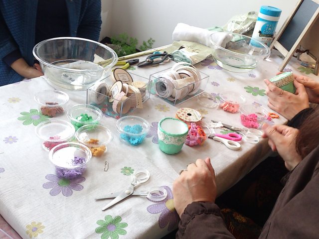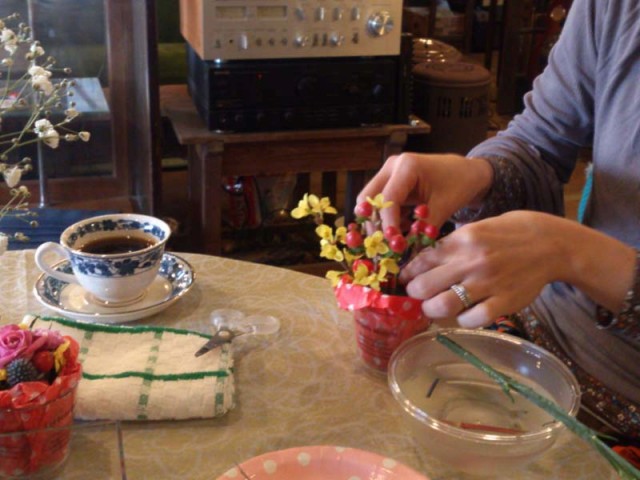 思い思いのアレンジとケーキタイムを楽しんでいました。