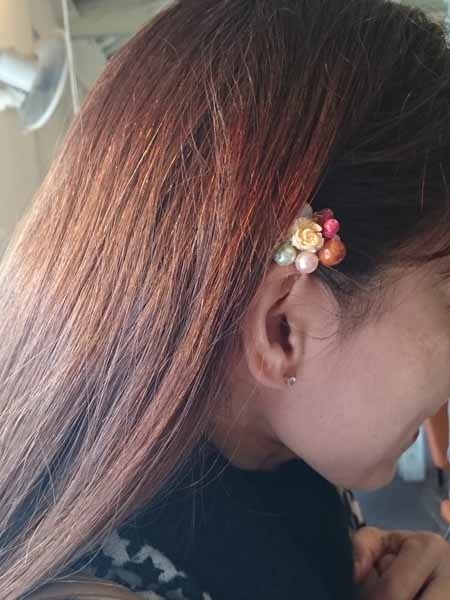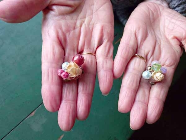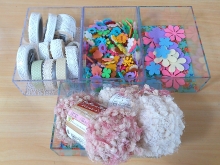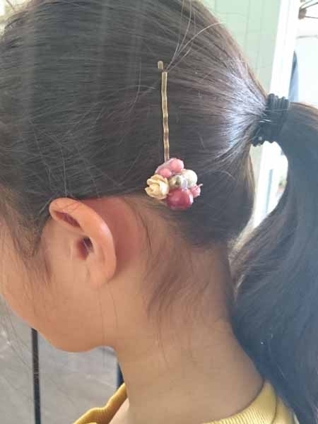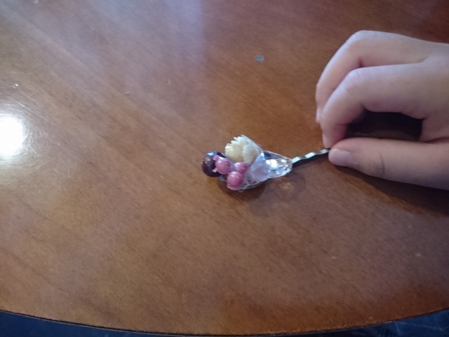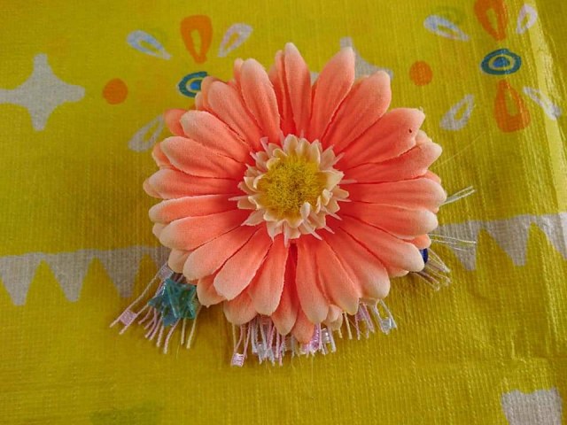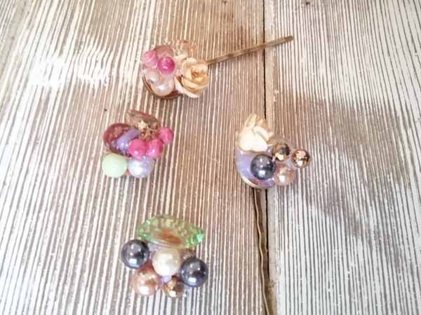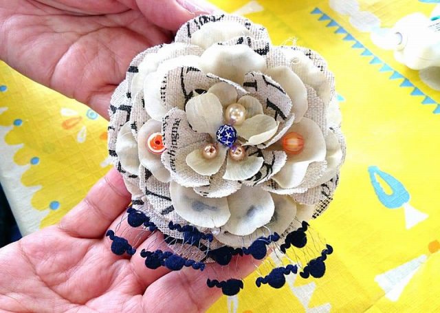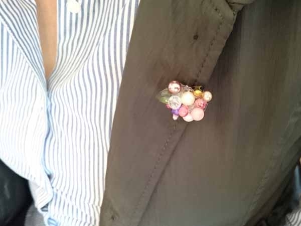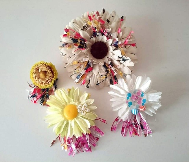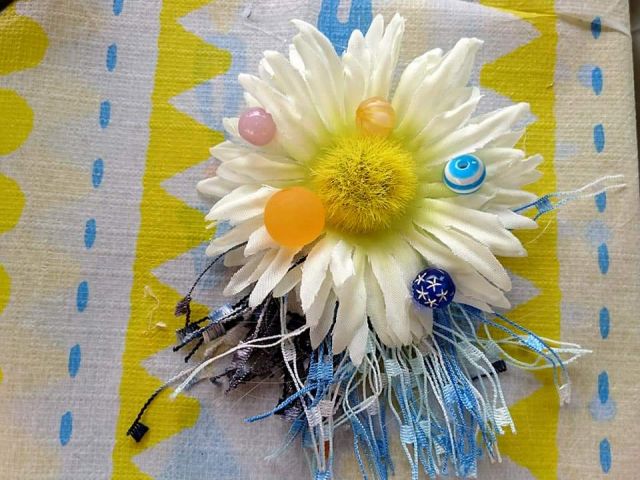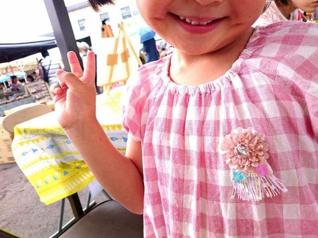 アーティフィシャルフラワーやリボン、ボタン、ビーズなどを使ってグルーガンで楽しくブローチ作り。
