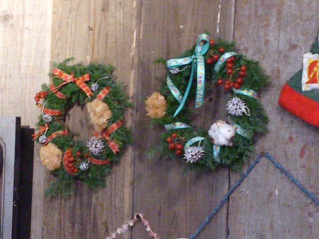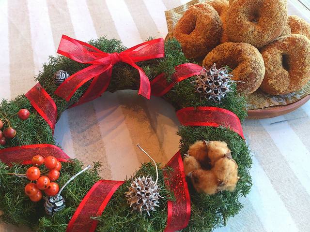 木の実やリボンでデコレーションしました。