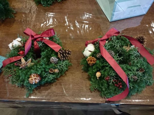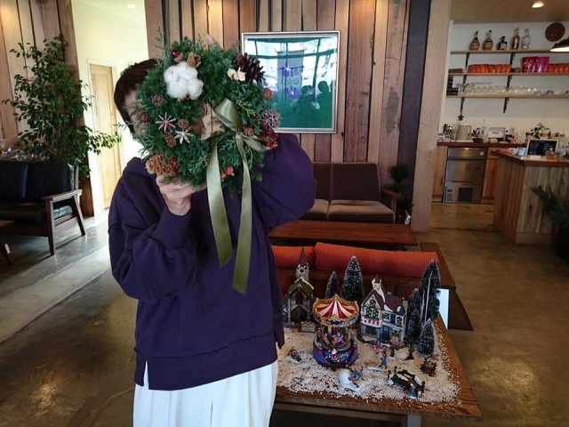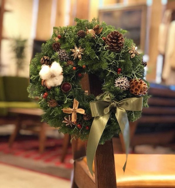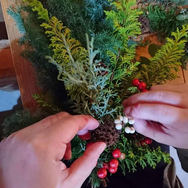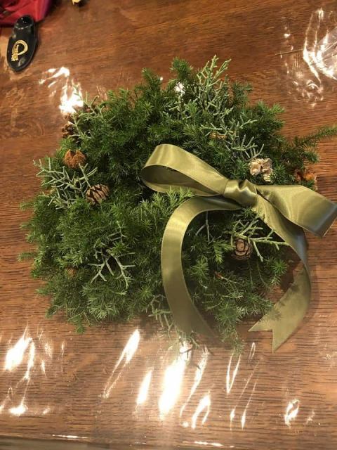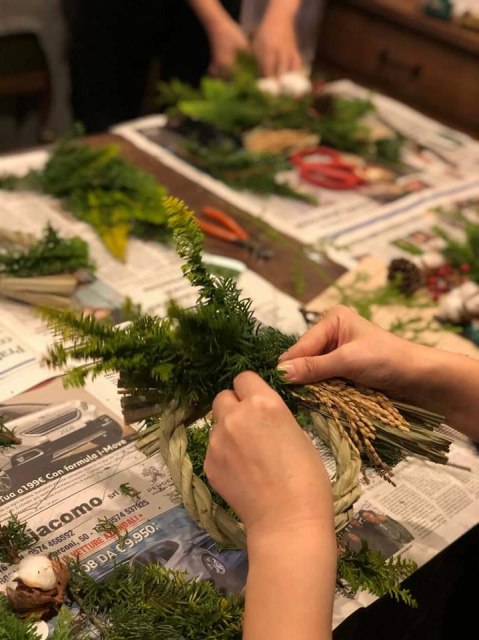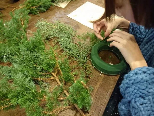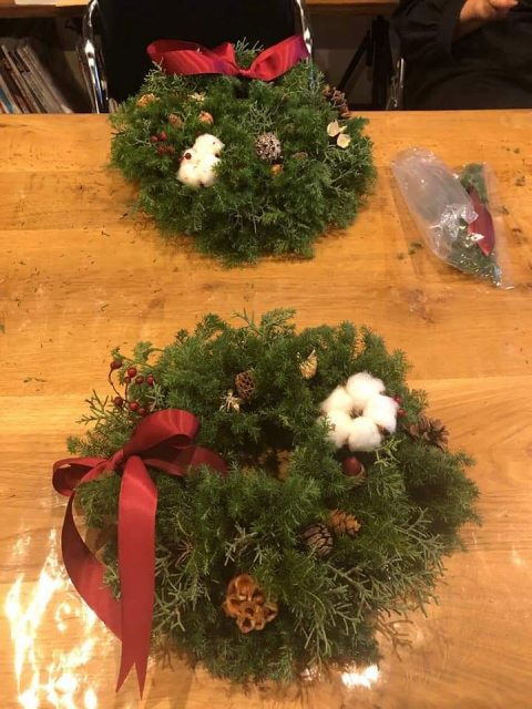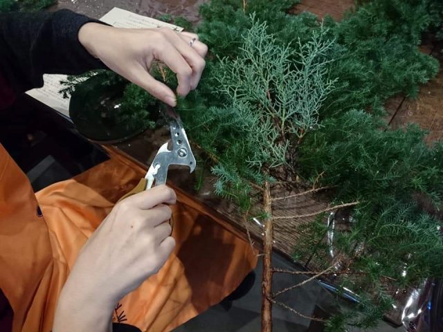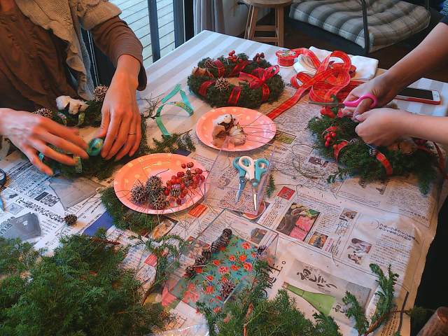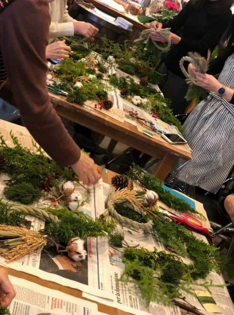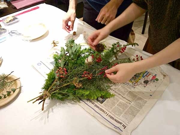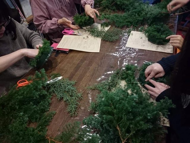 ヒメスギを使ったクリスマスリース作り。