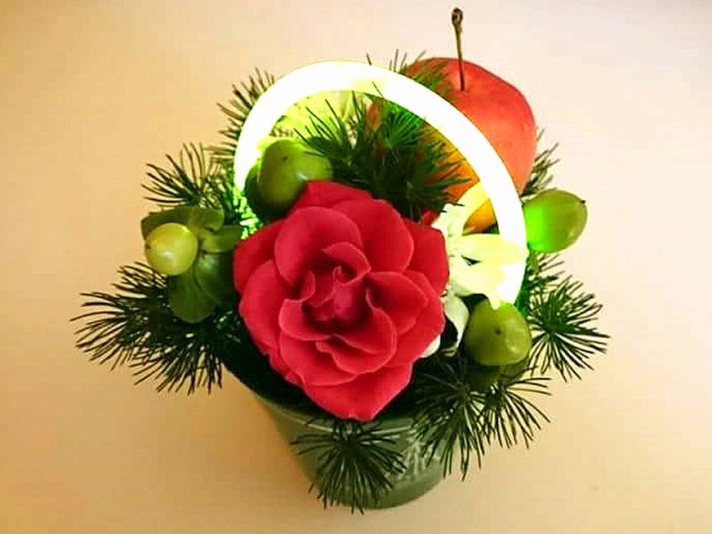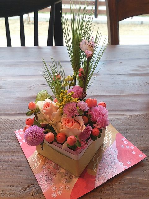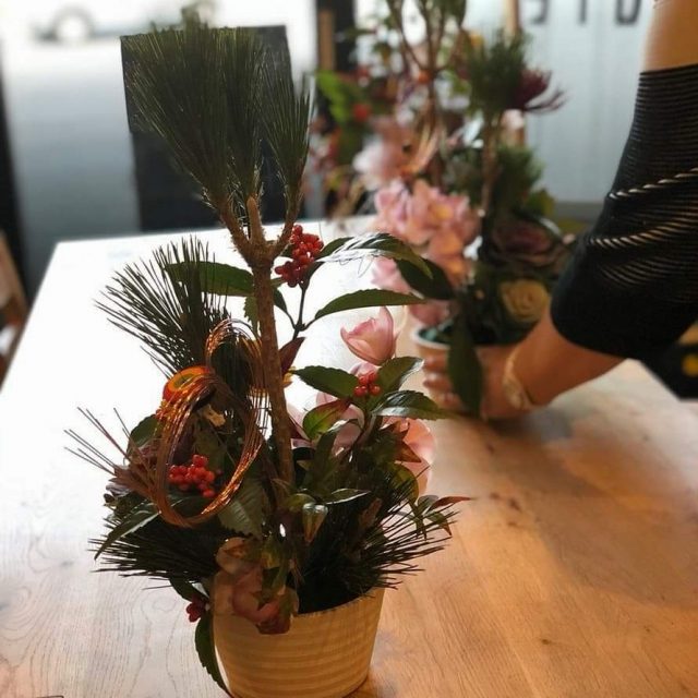 縁起のいい花材を使って、来る年の幸せを願ってアレンジ。