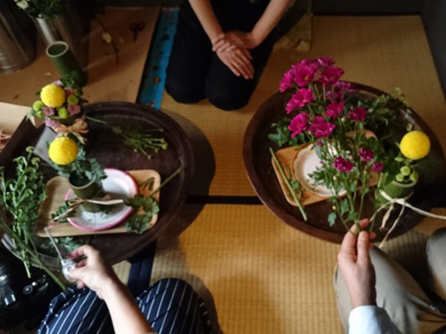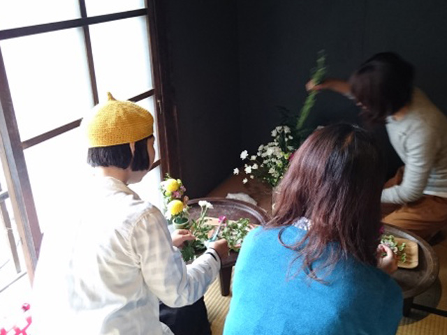 女性建築士さんたちが複数のお茶室を有す古民家「渡邊邸」でいけばな体験。