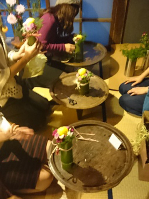 古民家の空間に溶け込む、個性豊かないけばな作品が完成しました☆