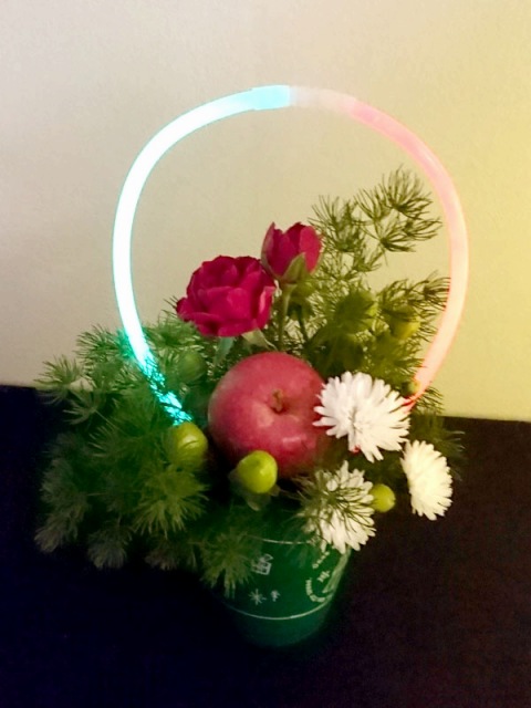 花展「neon」展示会会場でサイリウム(蛍光スティック)を使った作品作り。