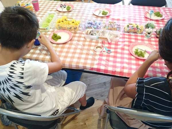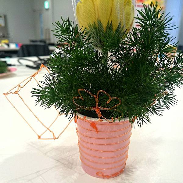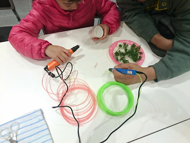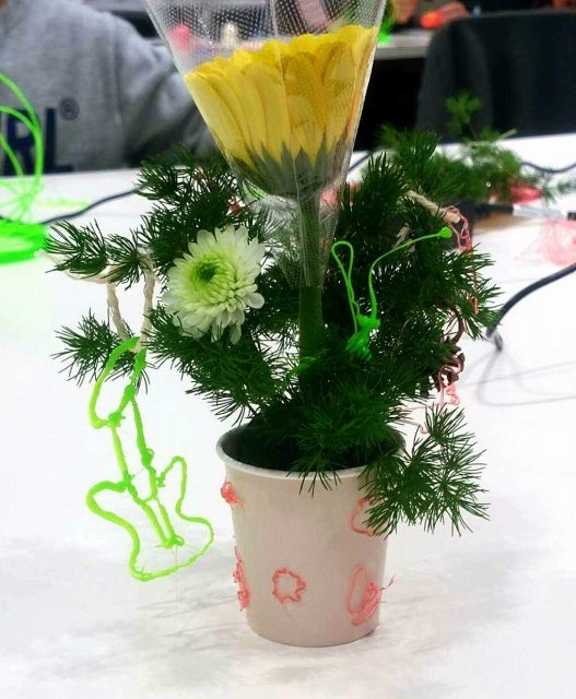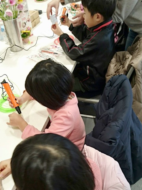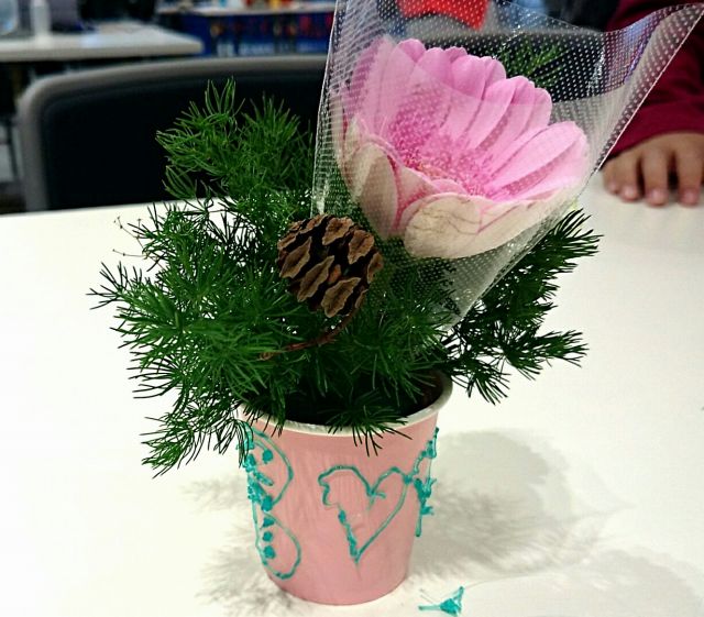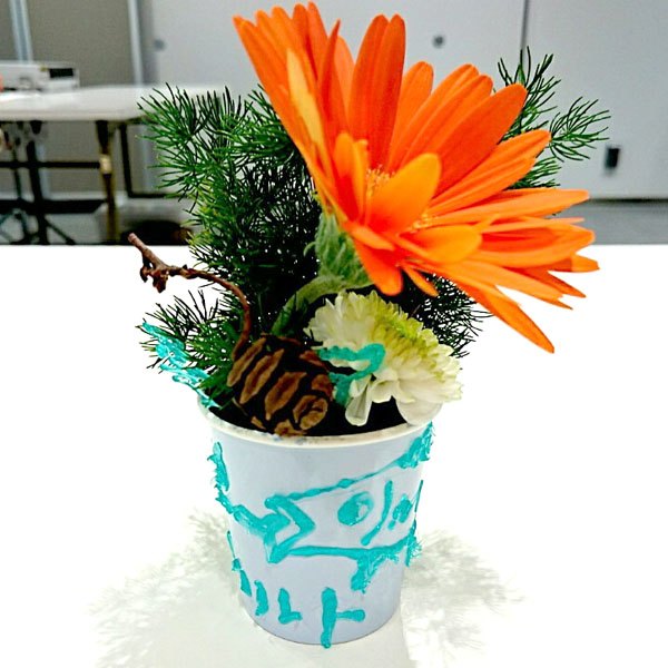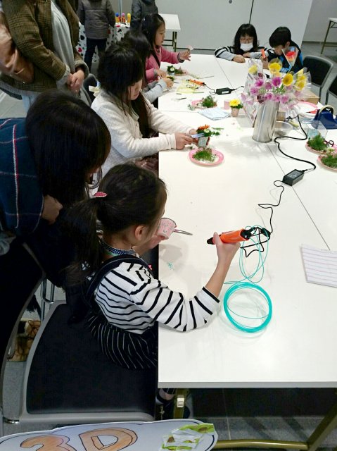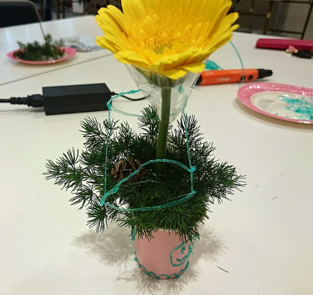 3Dペンでこども達に自由な発想でお絵描きしてもらい、ミニアレンジ花を体験してもらいました。