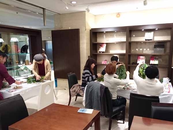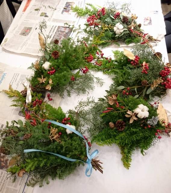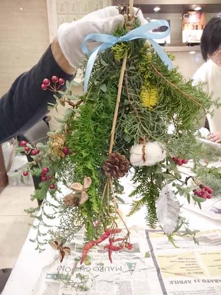 ワークショップでは初めてのスワッグ作り。