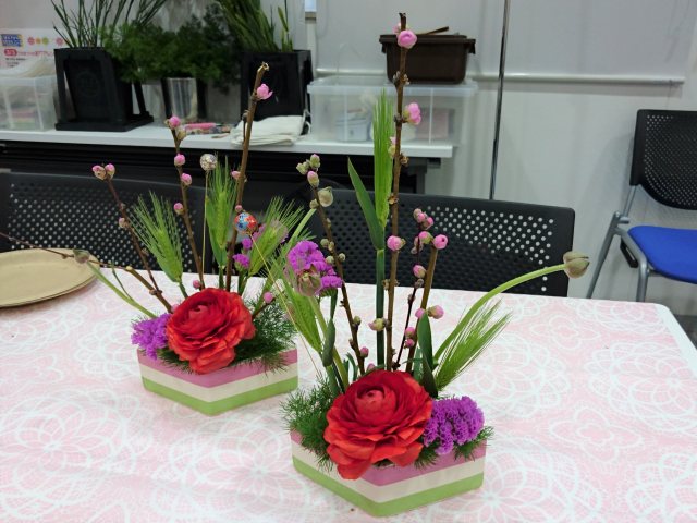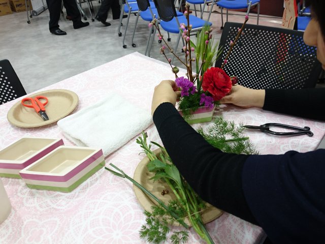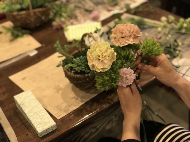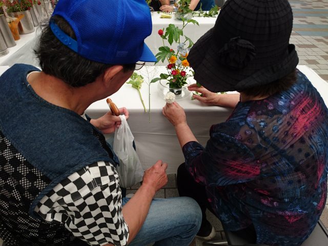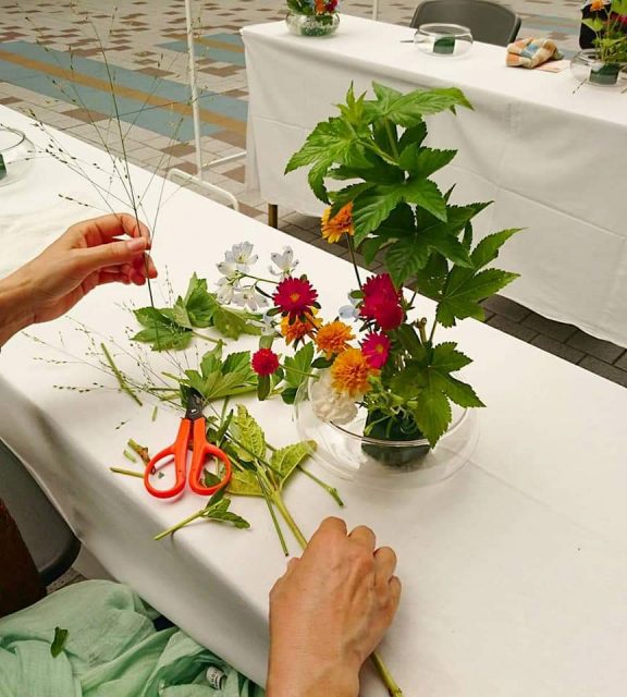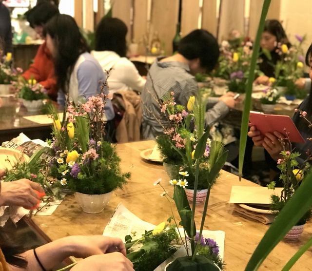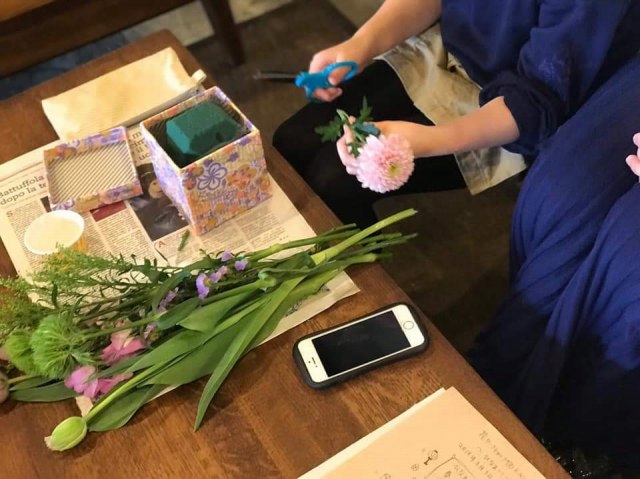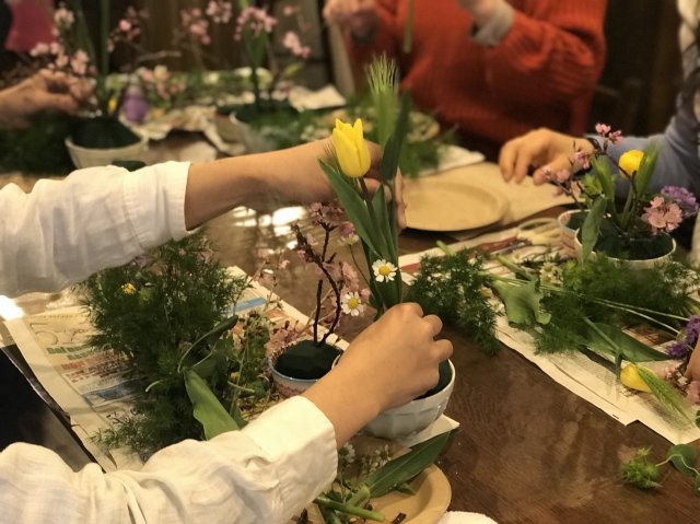 「いけばな初めてでも大丈夫ですか?」と怖々(笑)参加してくれた方たちも、出来上がり時にはとてもうれしそう。