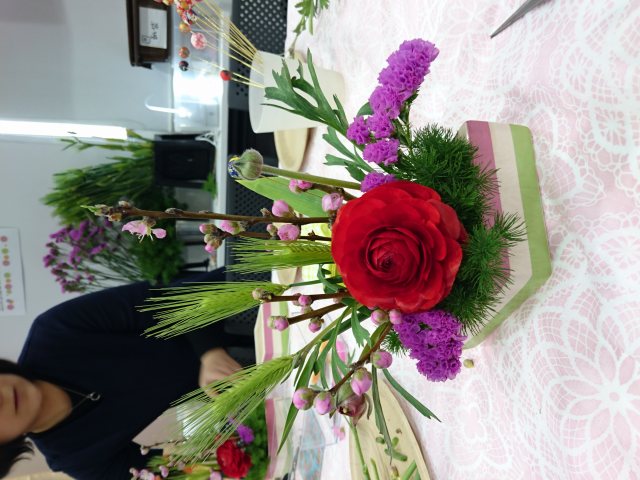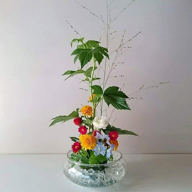 初夏にピッタリな色とりどりの花を生けていただきました☆