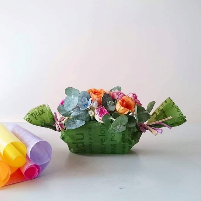 色とりどりの包装紙やリボンに包まれたお花たちは、食べられなくても眺めるだけで元気を分けてもらえます☆